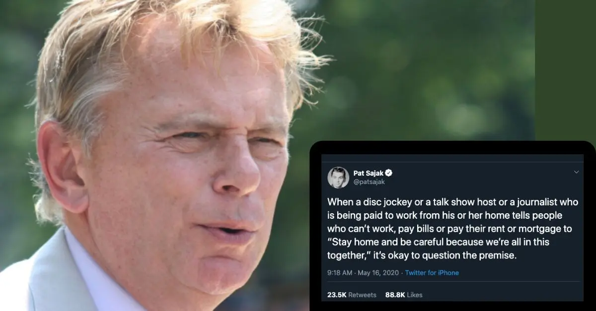 Wheel of Fortune host Pat Sajak recently sent out a tweet slamming media journalists for their double standards. His tweet reads, “When a disc jockey or a talk show host or a journalist who is being paid to work from his or her home tells people who can’t work, pay bills or pay their rent or mortgage to “Stay home and be careful because we’re all in this together,” it’s okay to question the premise.”