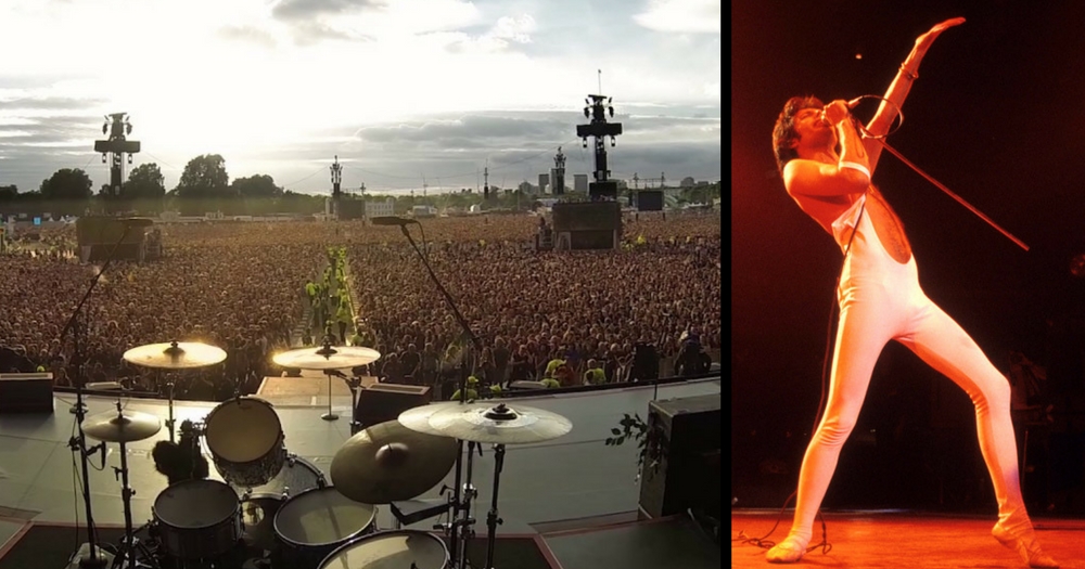 While waiting to see a live Green Day show in London’s famous Hyde Park, the energetic crowd of over 65,000 people put their voices together in a rousing version of the operatic Queen song “Bohemian Rhapsody“. While they were singing to an empty stage, this version of the song was so organically earnest that it almost appeared as if they were offering a spontaneous tribute to the late great Freddy Mercury.