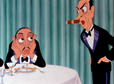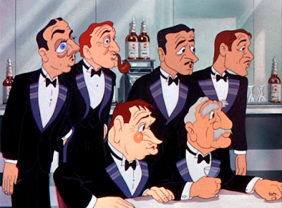 Boris Karloff, Arthur Treacher, and Buster Keaton do not have the same level of enthusiasm as the other customers for the bubble girl, alluding to the grim, expressionless characters they were known to portray.