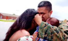 Cher holding her 4-month-old son, Elijah Blue Allman, during a scene from her Christmas show taped in Los Angeles, CA, Nov. 9th, 1976.