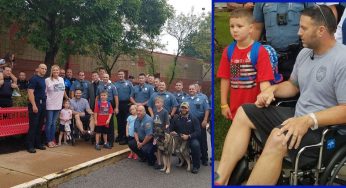 5-year-old Carmine Matteline had an exclusive crew alongside him to wish him well on his first day of school. His…